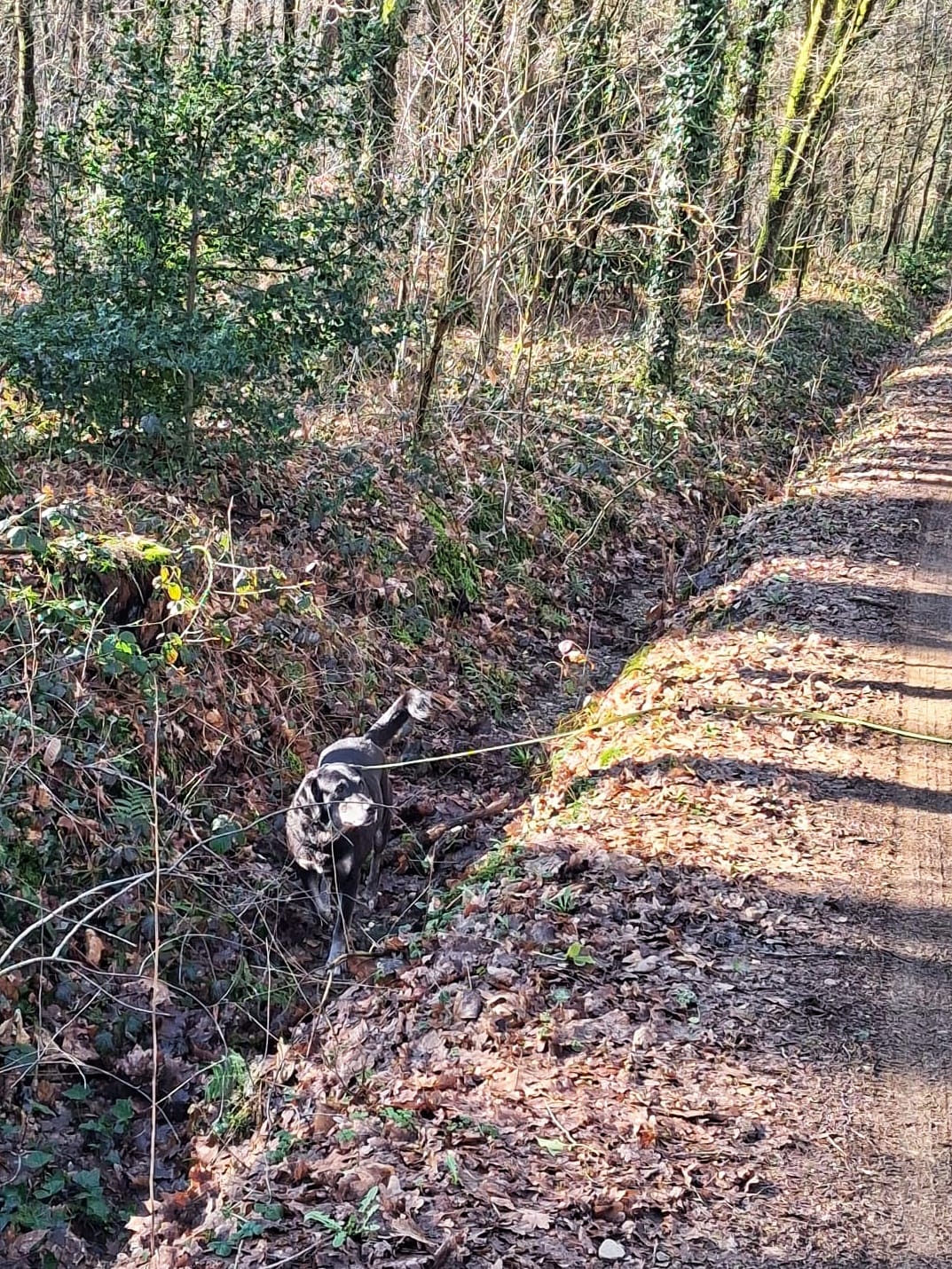 Het was een stralende dag en de zon maakte alles nog mooier. We begonnen aan onze wandeling, die ons regelmatig bergop en bergaf voerde. Bonnie sprong vrolijk voor ons uit, haar neus aan de grond, op zoek naar nieuwe geuren en de weetjes die daarbij horen. Onderweg kwamen we langharige koeien en paarden tegen, die rustig in de wei stonden te grazen. Bonnie vond het fascinerend, zeker de koeien waren dan ook uitermate schattig.